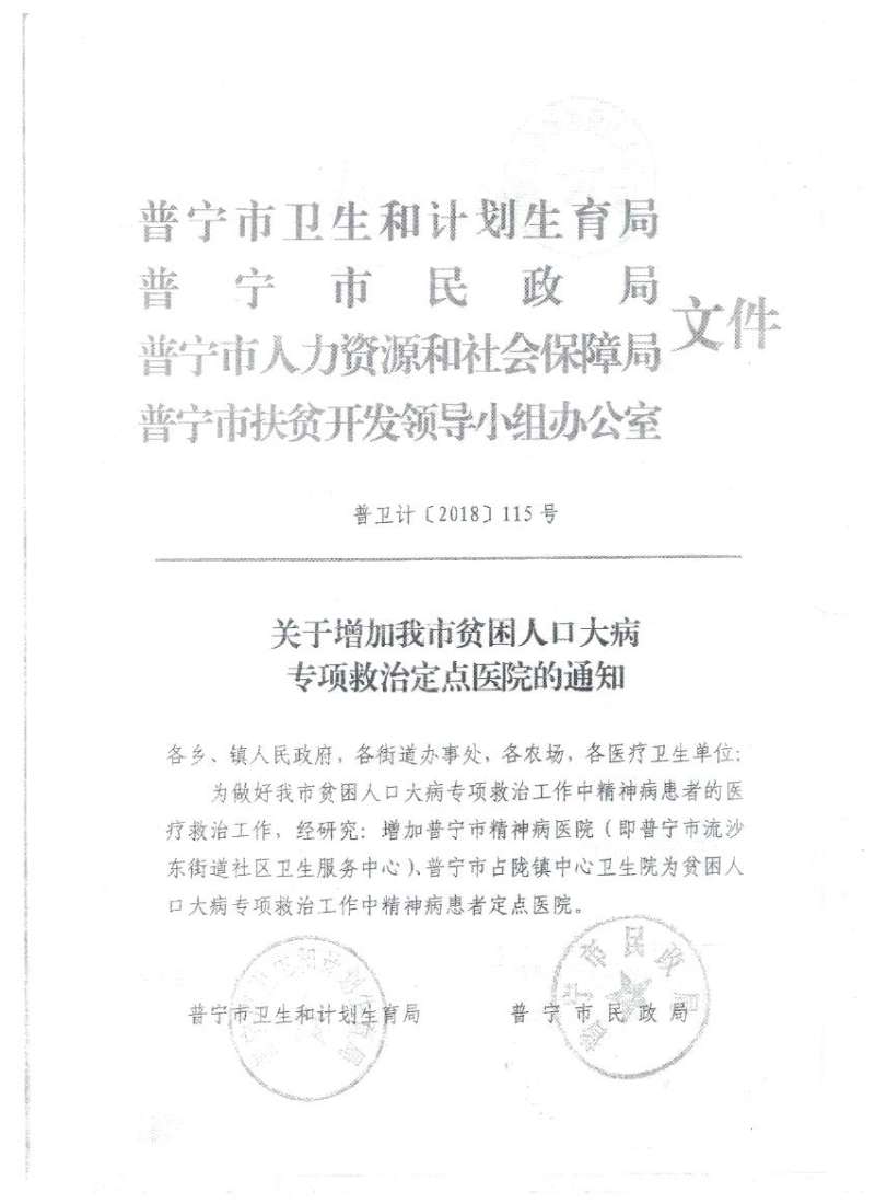 关于增加我市贫困人口大病专项救治定点医院的通知