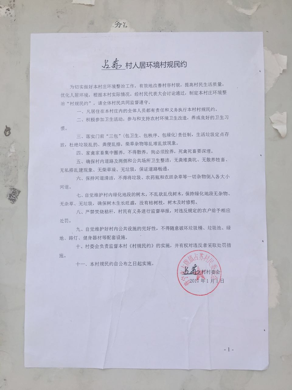 占苏村人居环境村规民约