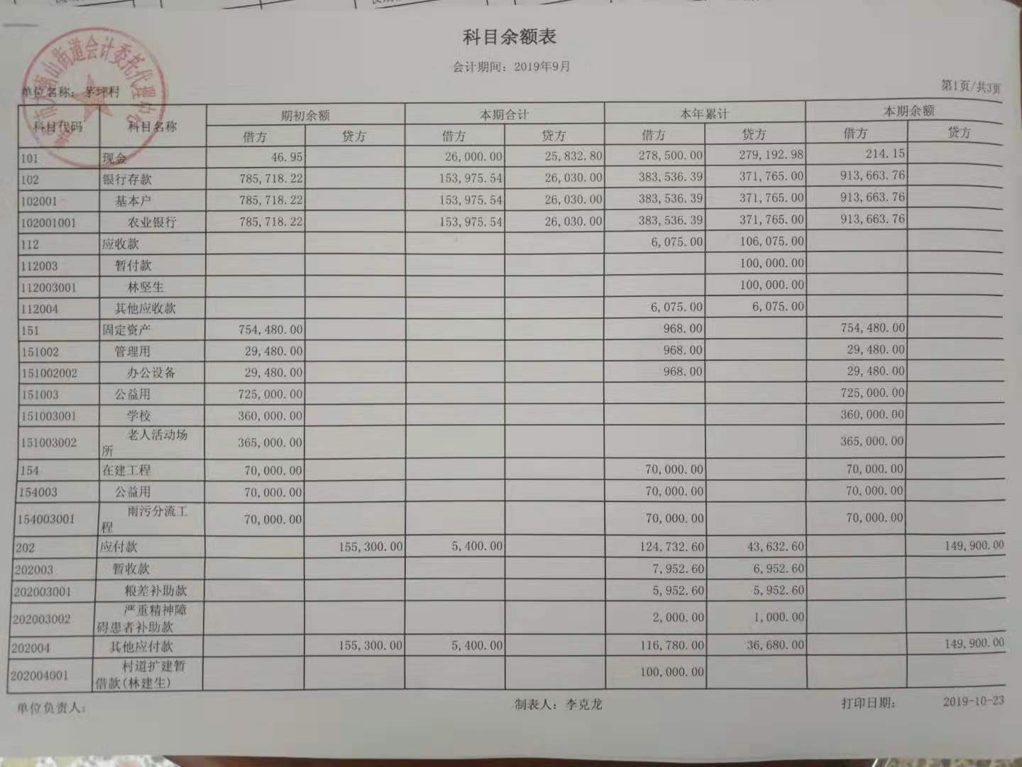 2019年9月份理财结果公布表及银行流水明细资产表科目余额表