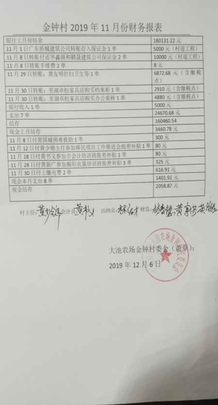 2019年11月份财务报表