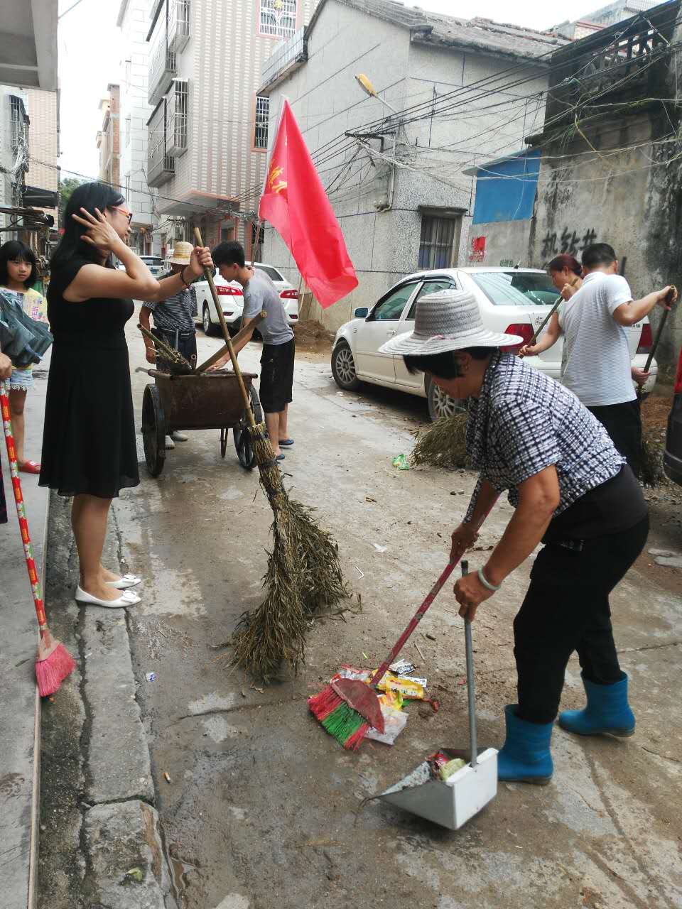 下午3时半,我村积极响应号召,在个角落及周边路段开展环境卫生整治活动。志愿者扛着志愿服务队队旗,拿着扫帚、簸箕等清洁工具,热情高涨,干劲十足,大家发扬吃苦耐劳、团结协作精神,对市区各个角落垃圾以及路面积水进行全面清理,路面焕然一新。同时,加强创文环保宣传,对沿街铺户乱摆乱放现象及时劝导制止,引导其自觉落实门前“三包”。在这个特别的日子,作为“创文为我 我为创文”主题实践活动,大家忙碌的身影与路边的文明宣传标语相得益彰。