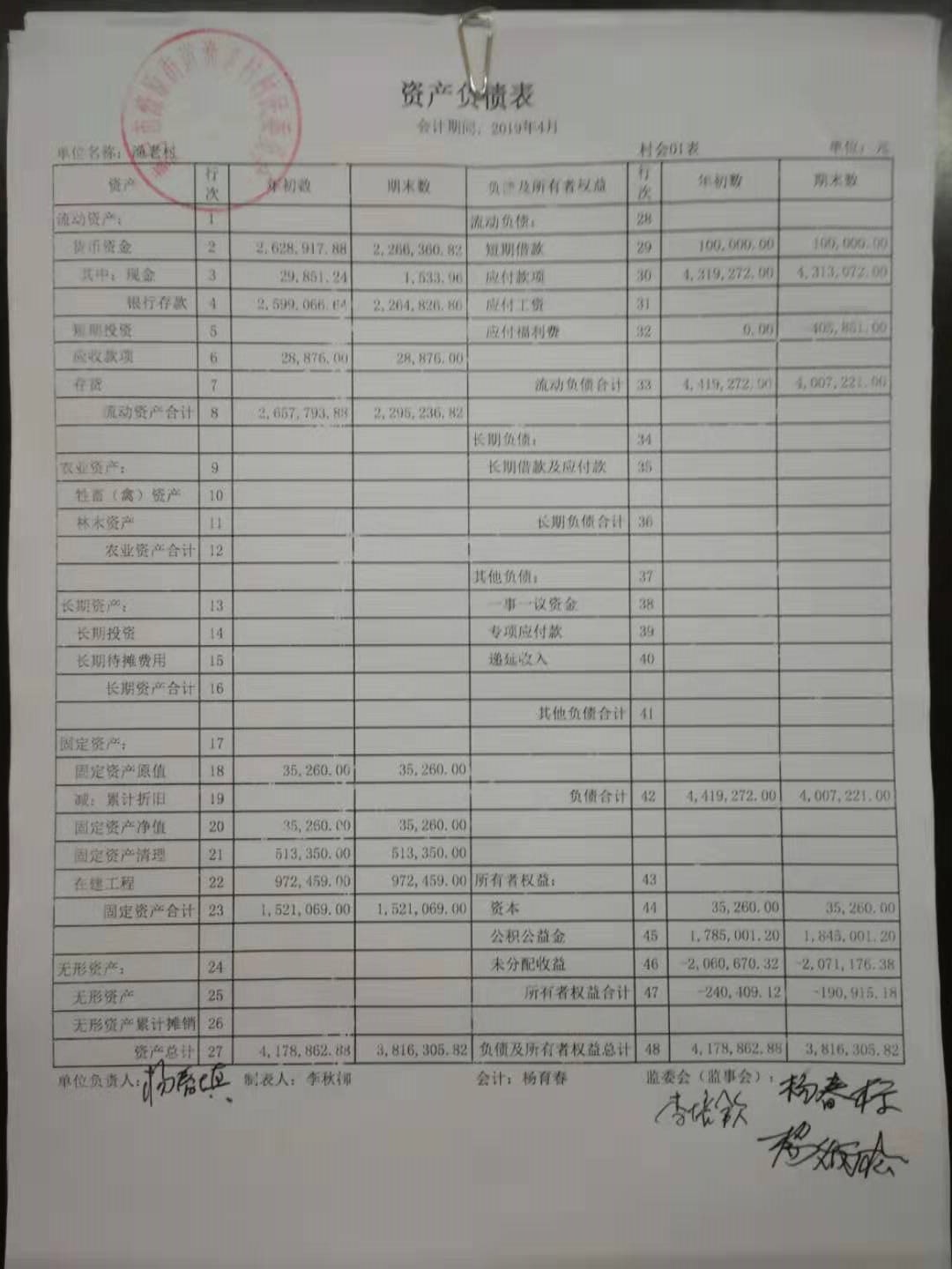 2019年四月份财务