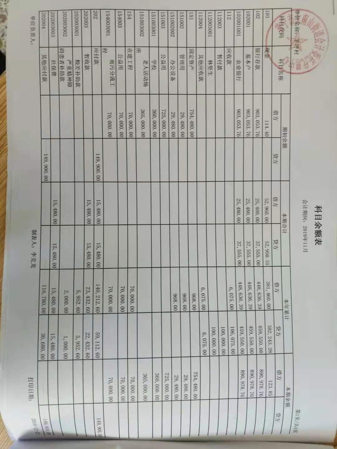 2019年11月份理财结果公布表及银行流水明细资产表科目余额表