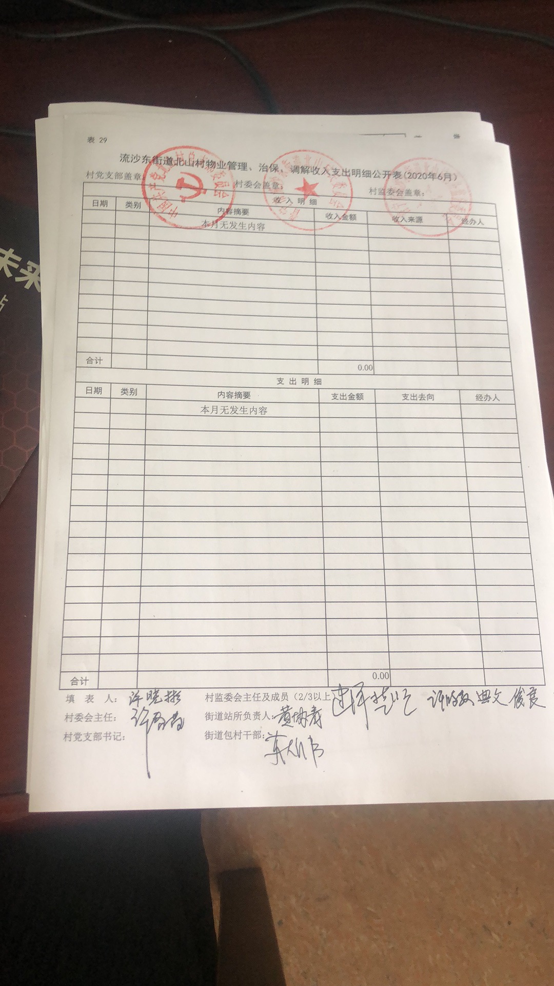 北山村我也管理.治保.调解收入支出明细公开表2020.06