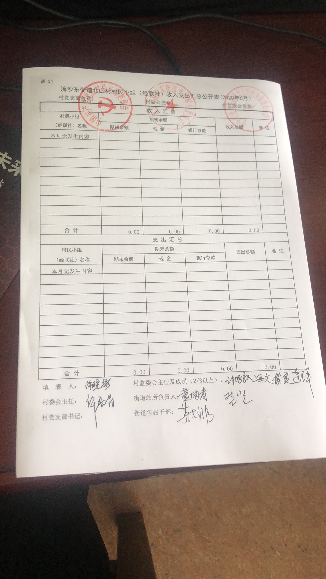 北山村村民小组经联社收入支出汇总公开表2020.06
