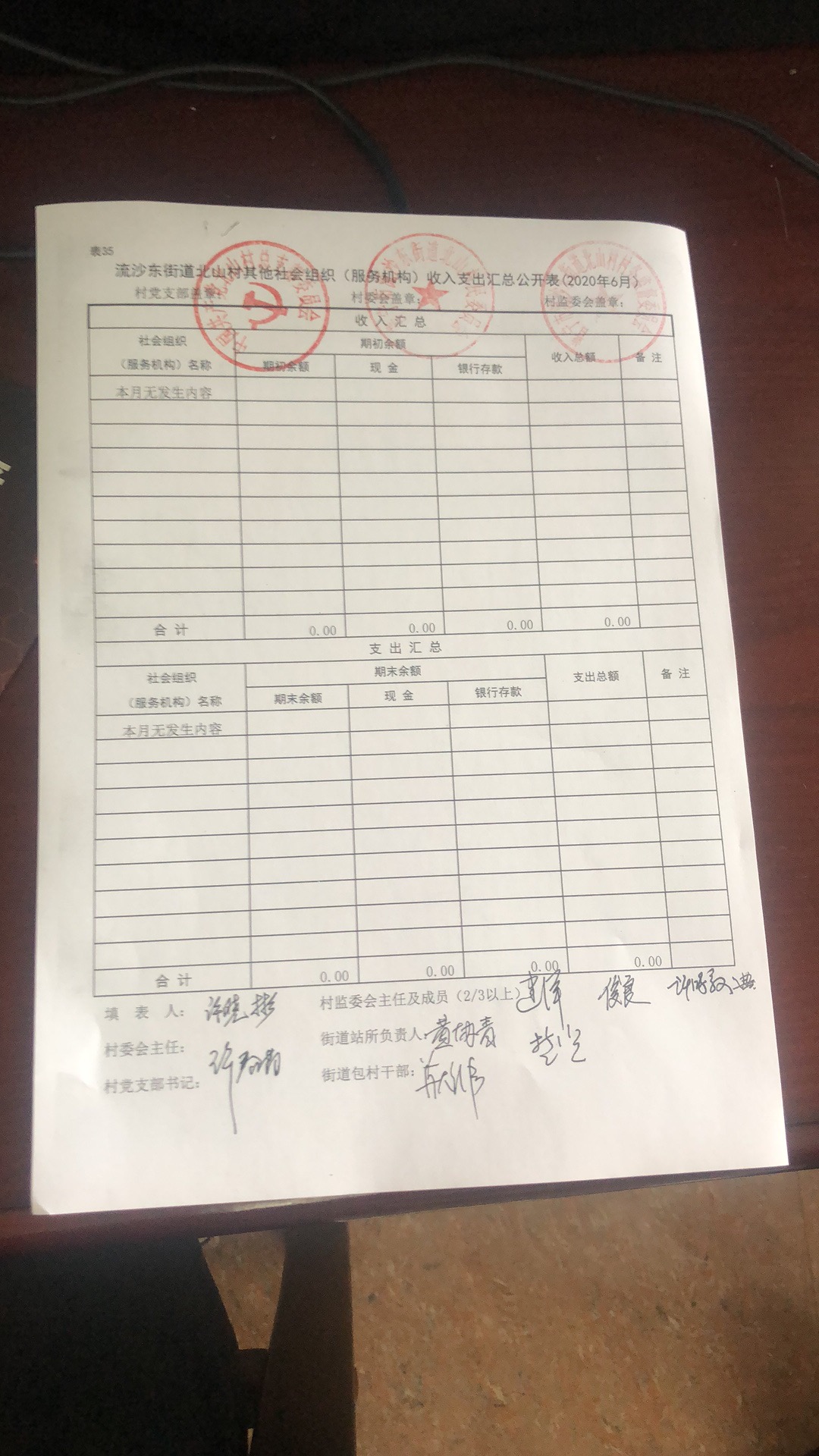 北山村其他社会组织服务机构收入支出汇总公开表2020.06