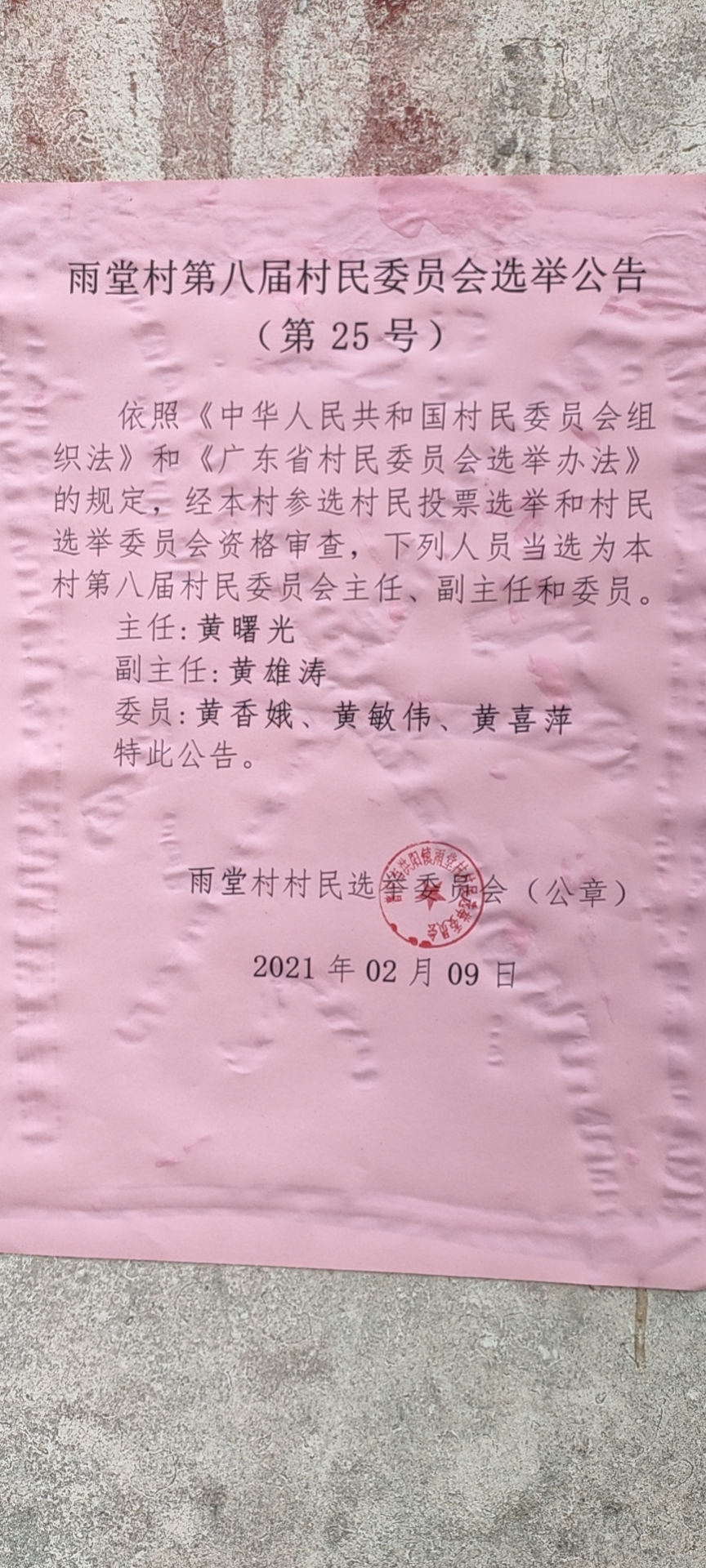 雨堂村第八届村民委员会选举公告(第25号)
