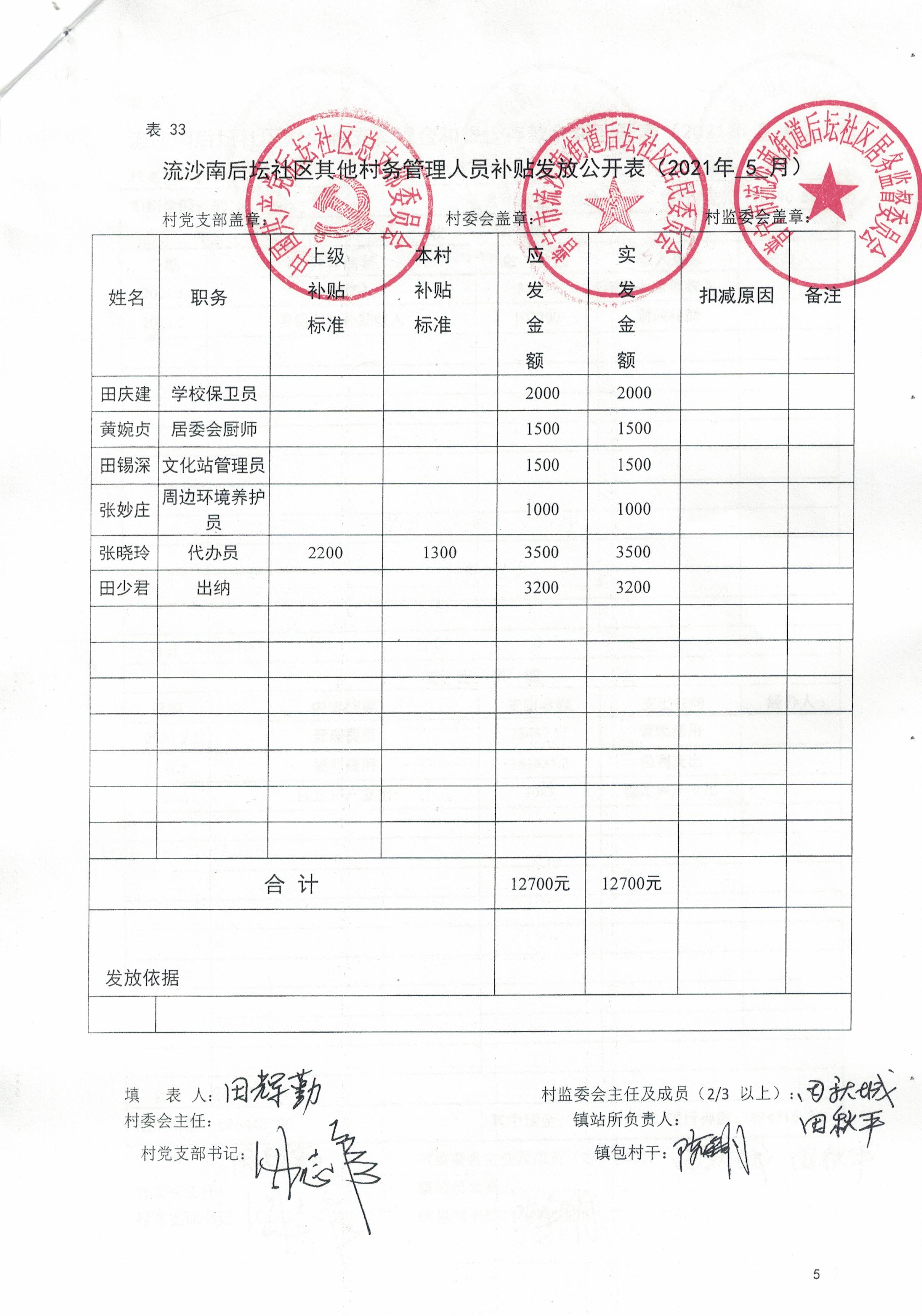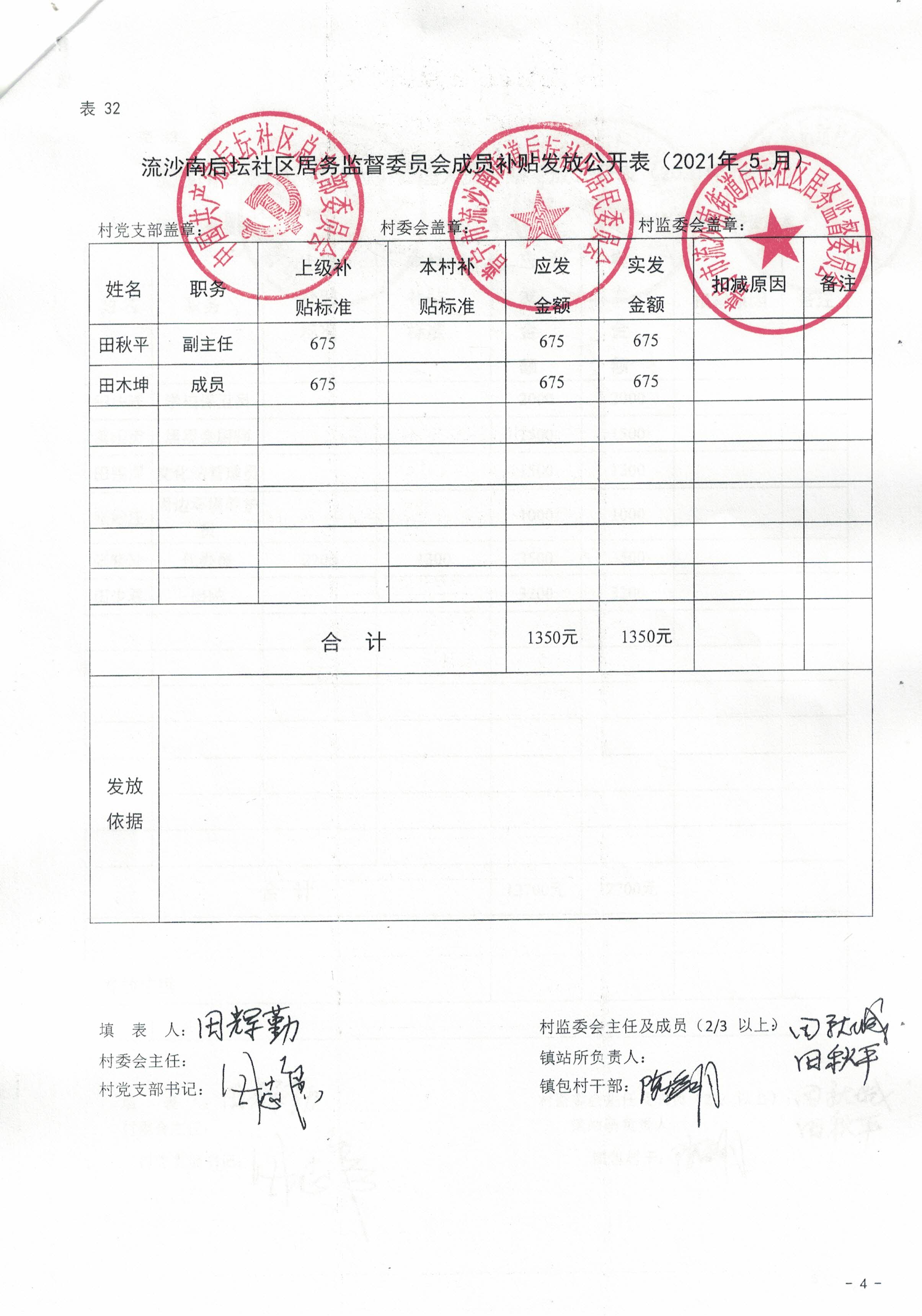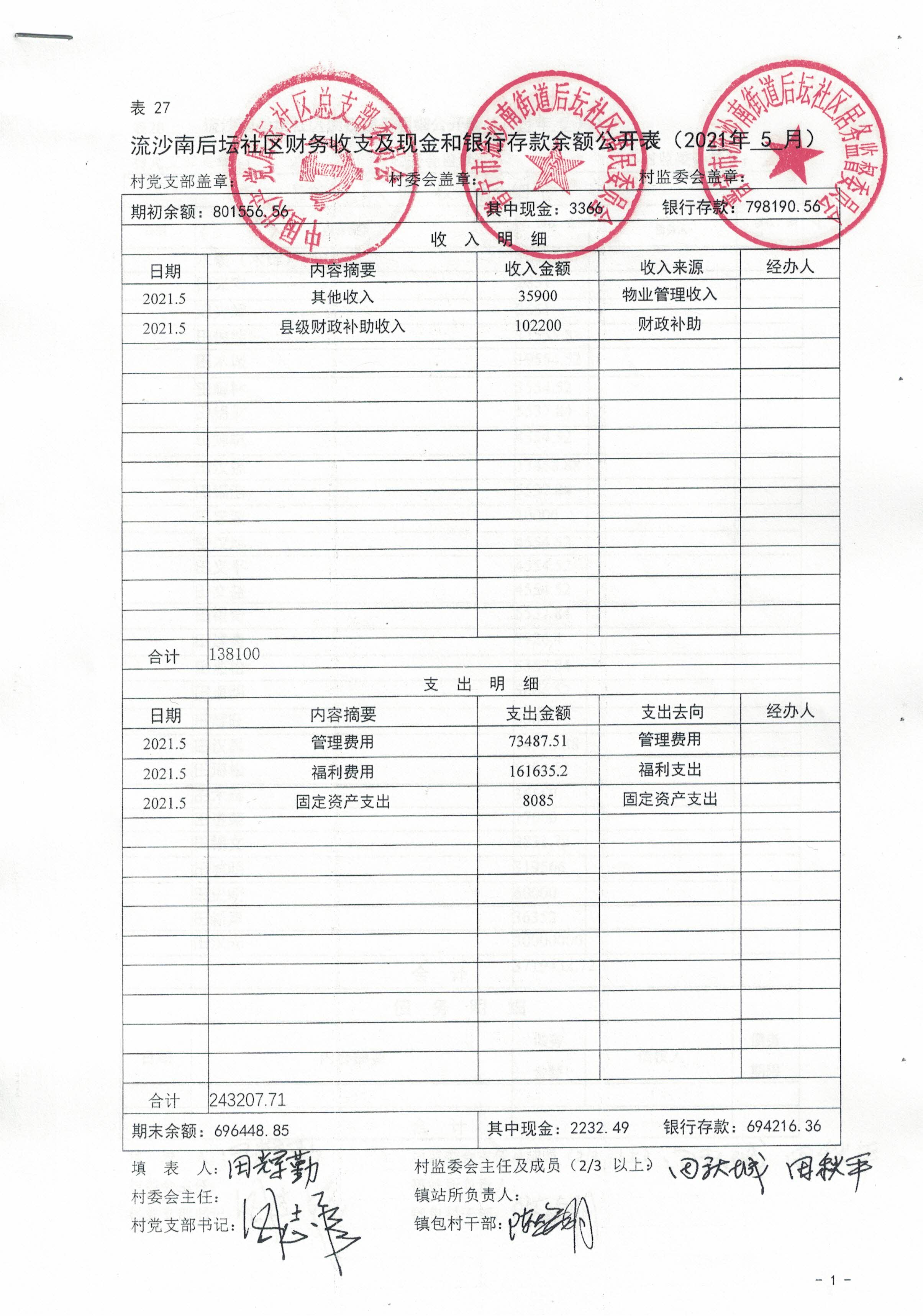 后坛社区2021年5月财务公开