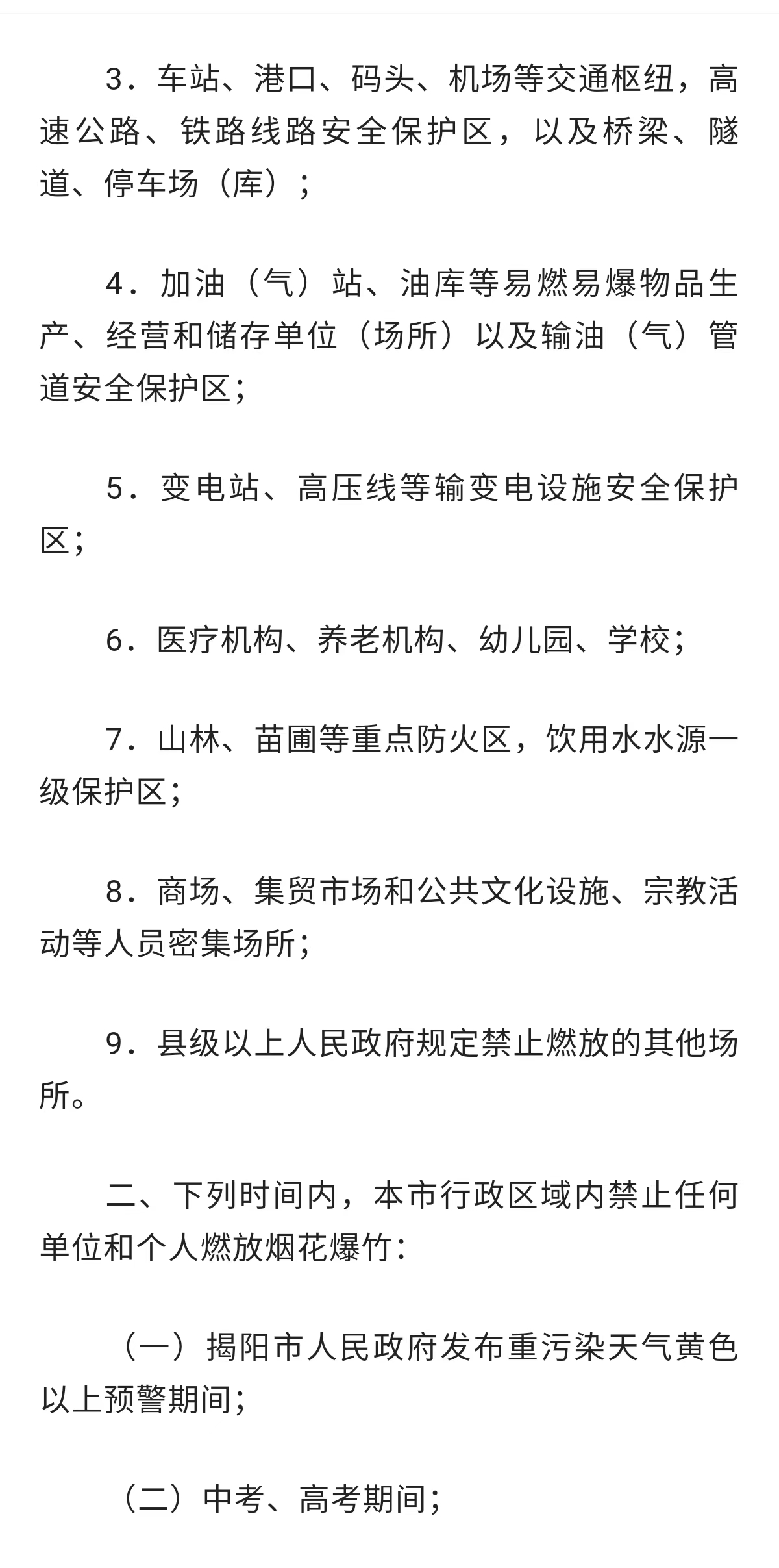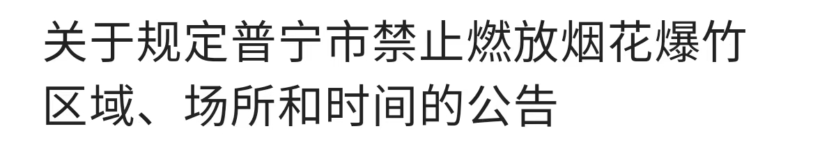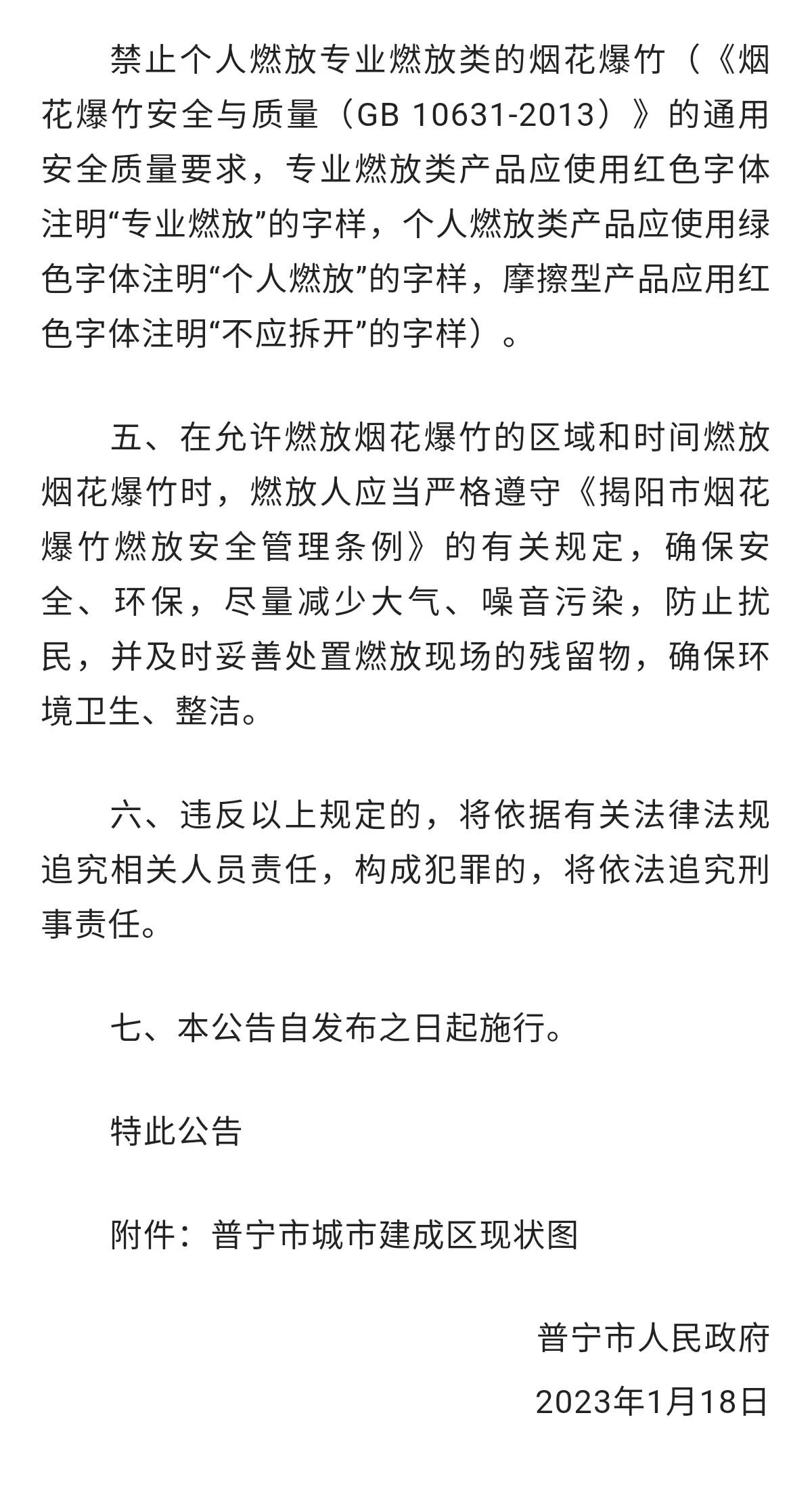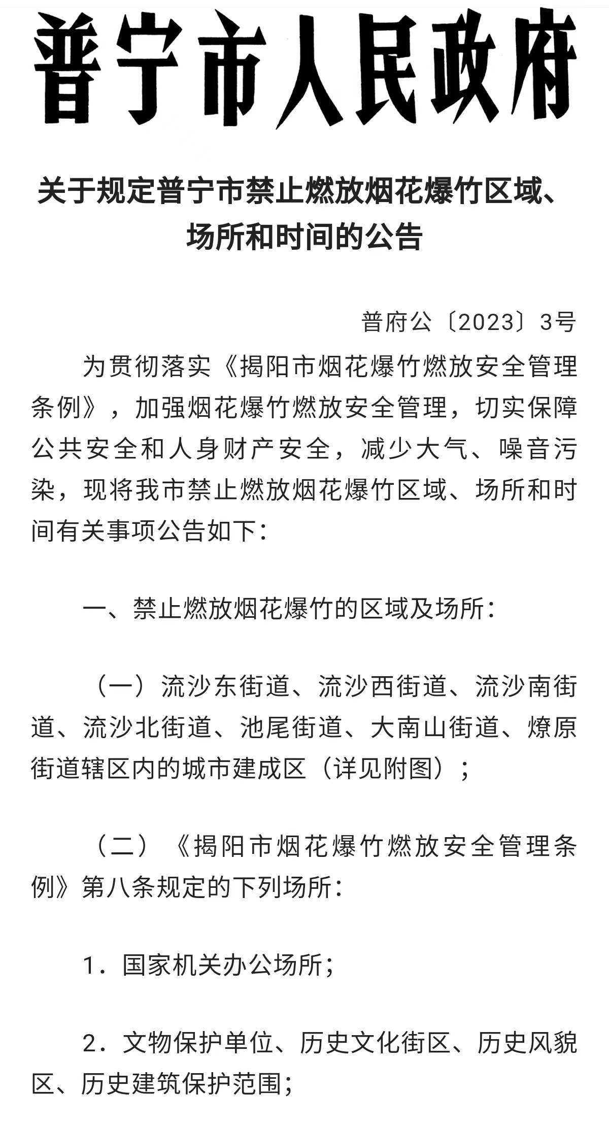 关于规定普宁市禁止燃放烟花爆竹区域、场所和时间的公告