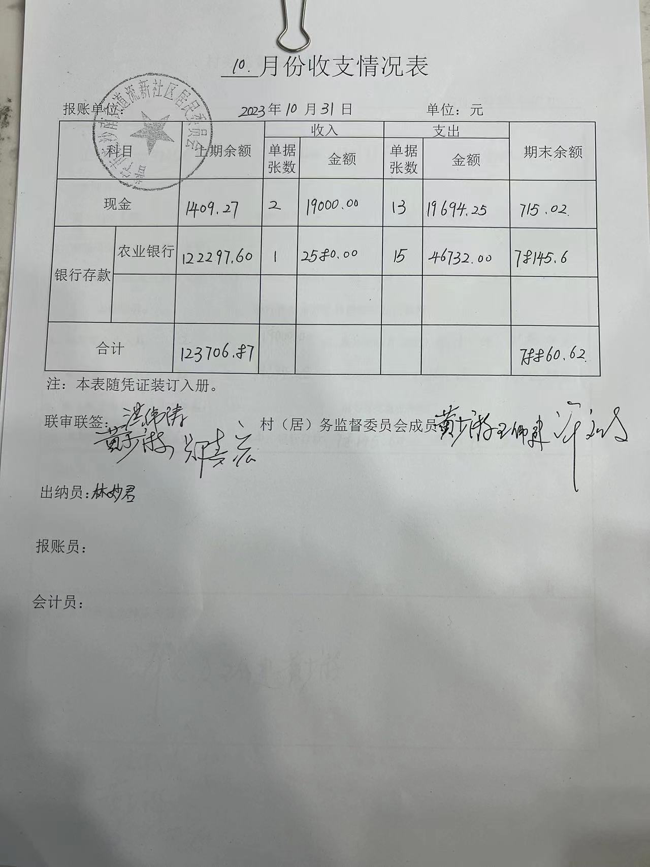 流新社区10月财务情况