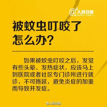 近期出现发热、头疼、关节痛等症状的市民,要及时就医,并告知医生外出旅行和蚊虫叮咬史,以便早期诊断和治疗。