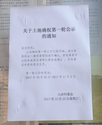关于土地确权第一轮公示的通知