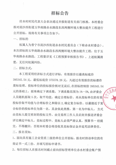 流沙西街道玉华南路赤水路段东西两侧环境大整治提升工程招标公告