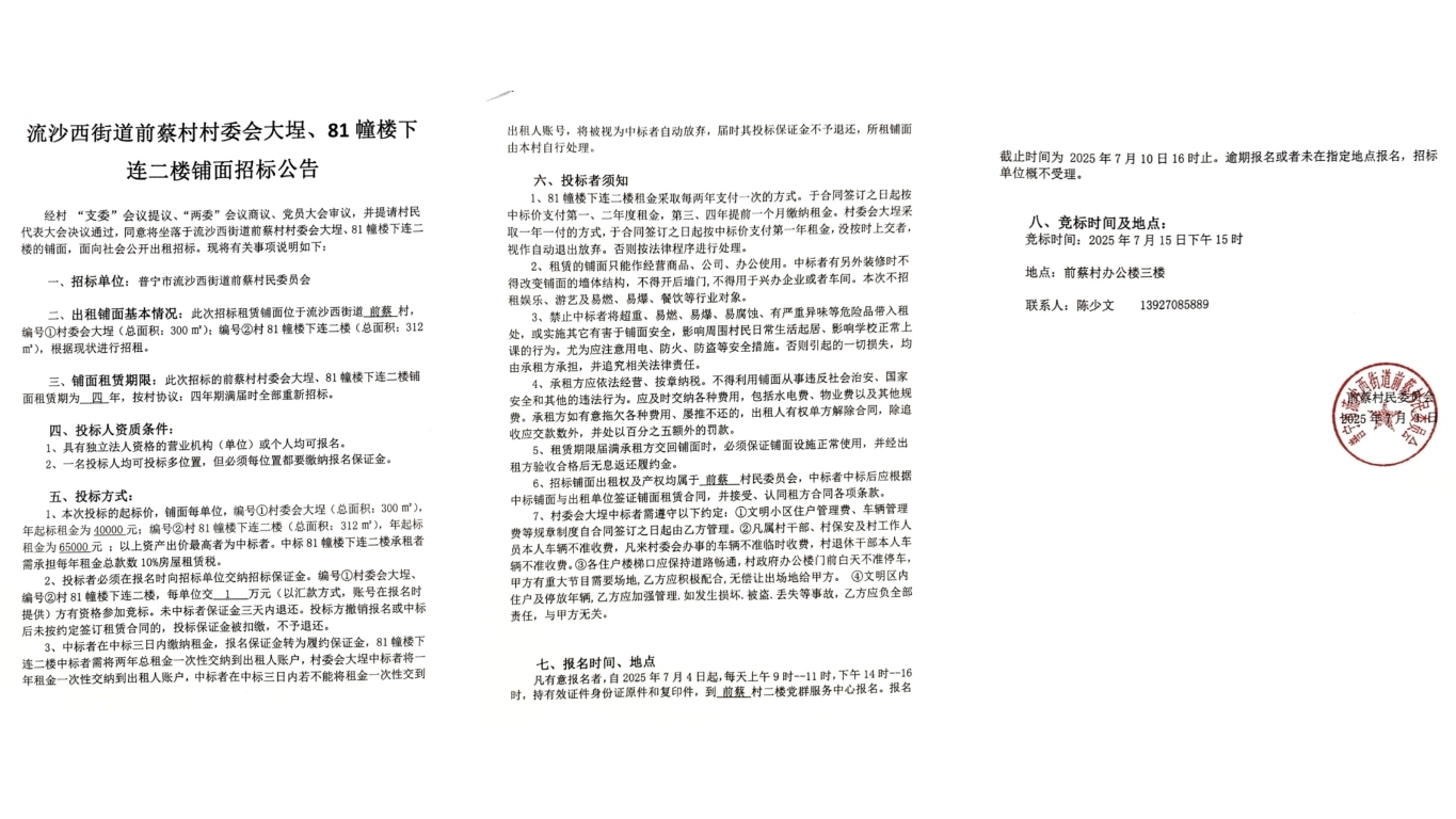 前蔡村招标公告