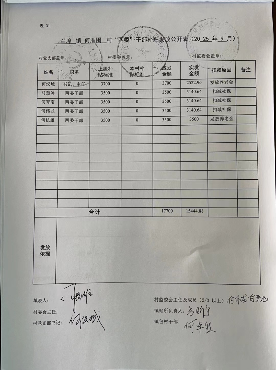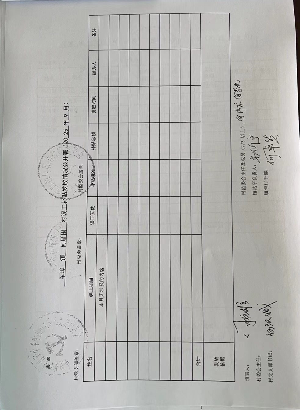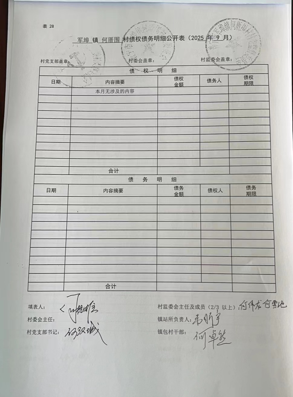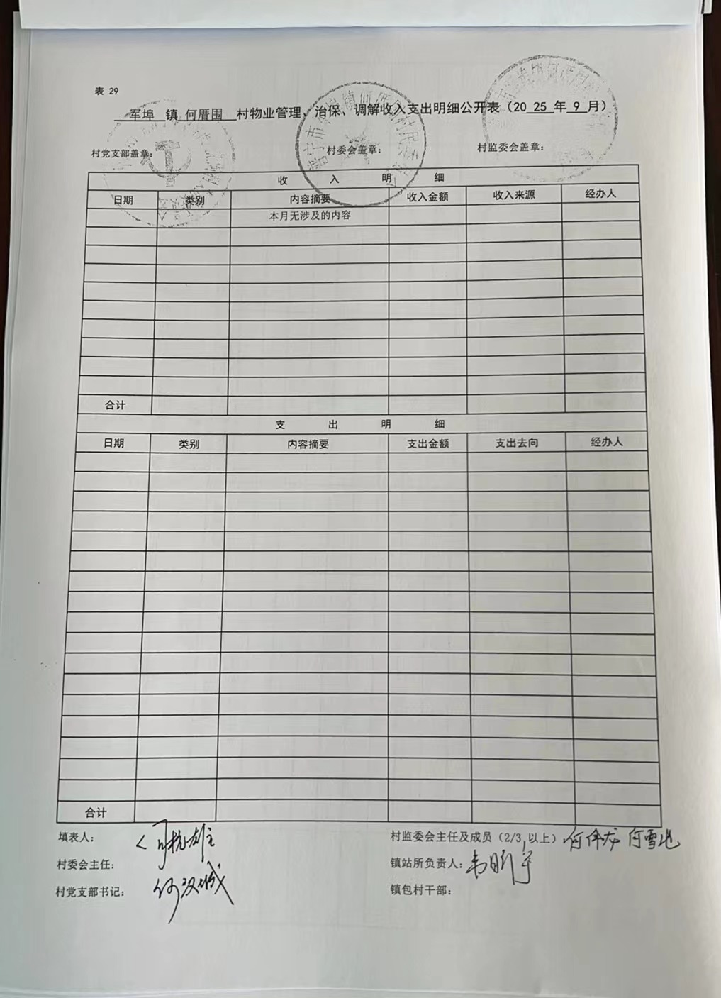 何厝围村2025年9月份财务公开